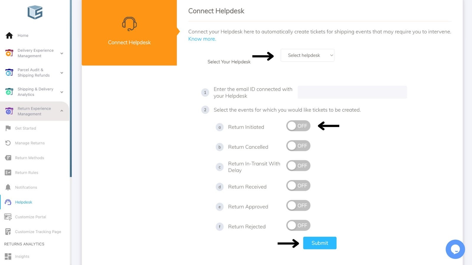 Tip: To avoid unnecessary tickets, enable only the delivery events most relevant to your business, such as delays, exceptions, or failed deliveries.