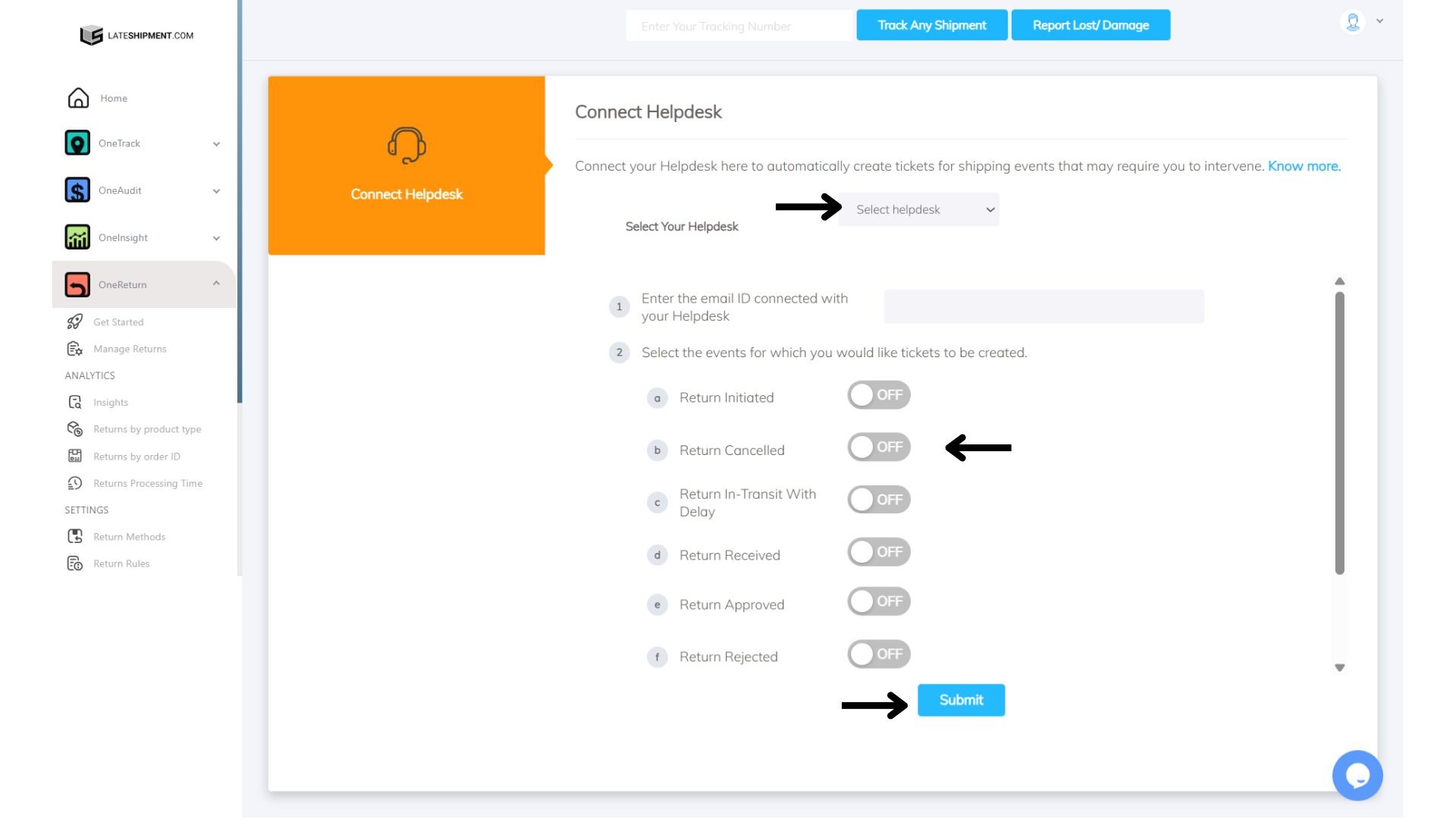Integrating your Freshdesk account with LateShipment.com allows you to seamlessly stay on top of delivery events that may require attention. With this integration, tickets can be automatically created in Freshdesk for delivery events you select, ensuring your support team is always informed.