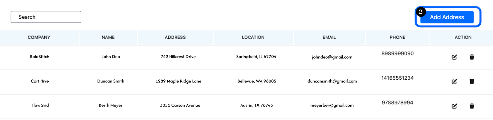 Navigate to OneShip→ Get Started → Manage Address → Add Address.