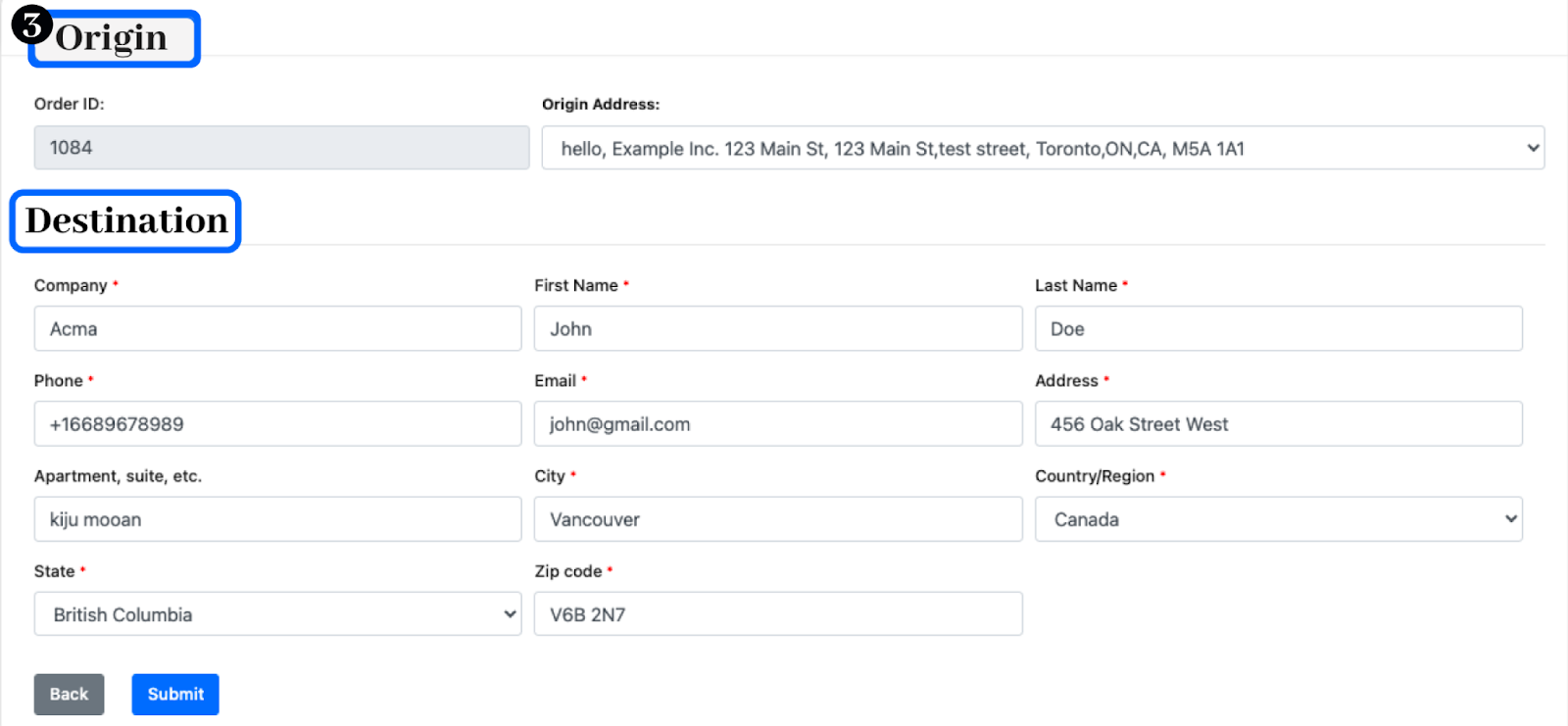 Select the Origin and enter the Destination Details.