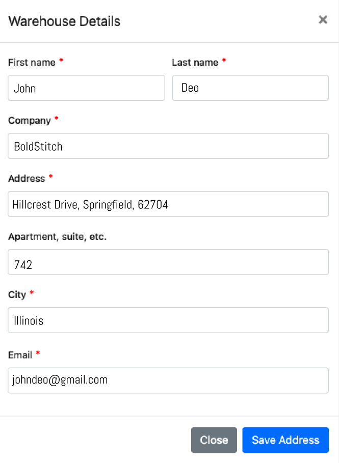 The warehouse address will be displayed as the origin (“From”) address when generating a shipping label.