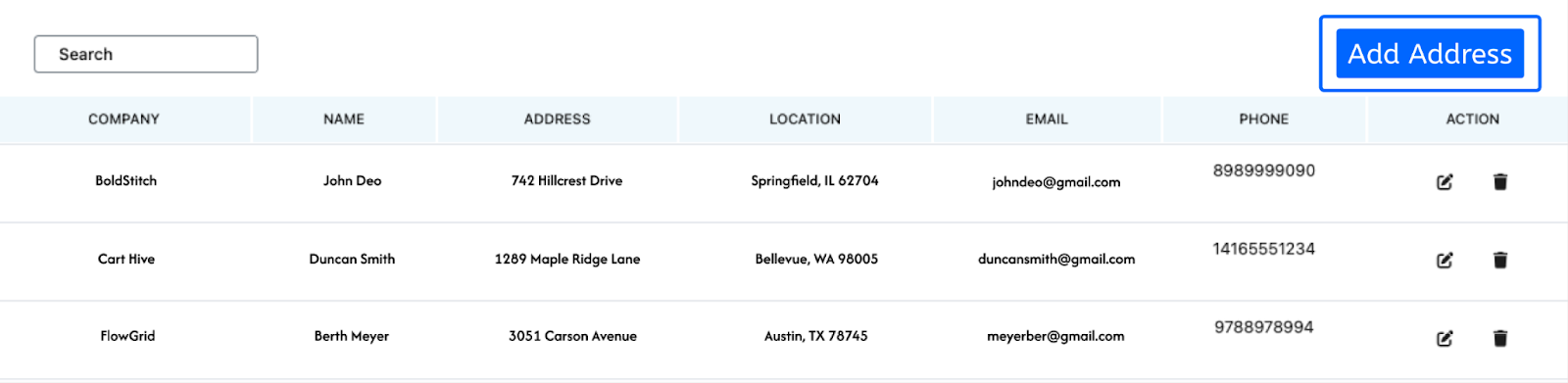 This guide explains how the Manage Address section allows you to maintain all your warehouse addresses under one tab. Keeping addresses accurate and up-to-date helps prevent cost errors and ensures shipments are fulfilled smoothly and on time.